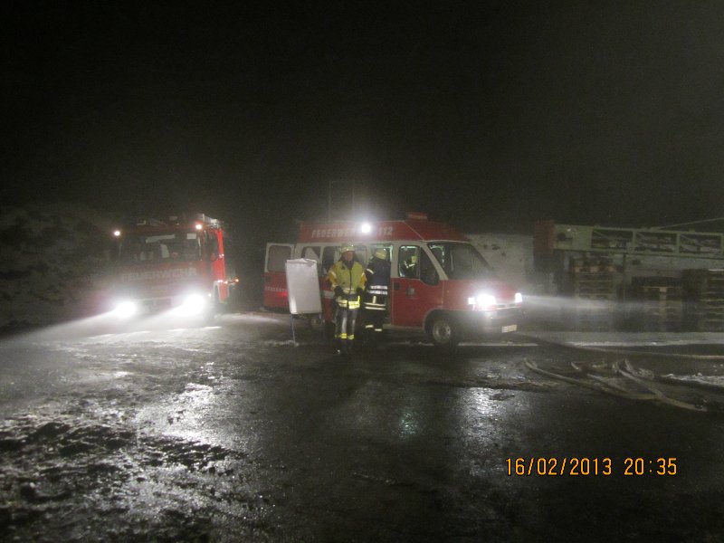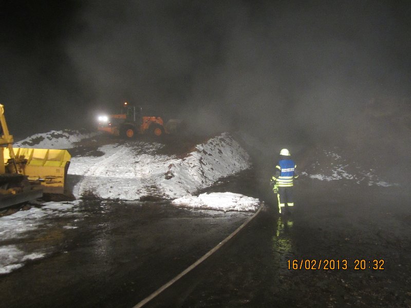 Durch ein Feuerwehrmitglied wurde durch aufsteigenden Rauch ein Brand in einem Rindenhaufen entdeckt. Daraufhin wurde die Feuerwehr alarmiert.