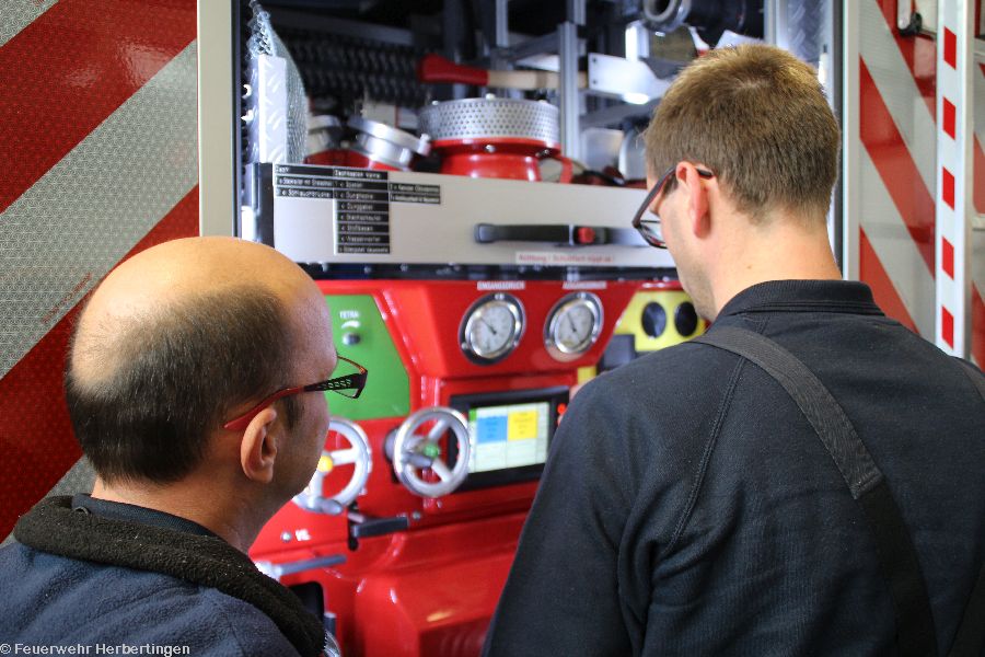Am Freitag den 07.11.14 konnte die Abteilung Herbertingen das neue Löschgruppenfahrzeug (LF) 10 bei der Firma Lentner in Hohenlinden abholen. Nach der Kontrolle der bei der Abnahme festgestellten Mängel wurden die angereisten Maschinisten von einem Mitarbeiter der Firma Lentner in die neue Fahrzeug- und Pumpentechnik eingewiesen. Unter anderem wurde auch der Dachwerfer auf dem neuen Fahrzeug in Betrieb genommen und getestet.