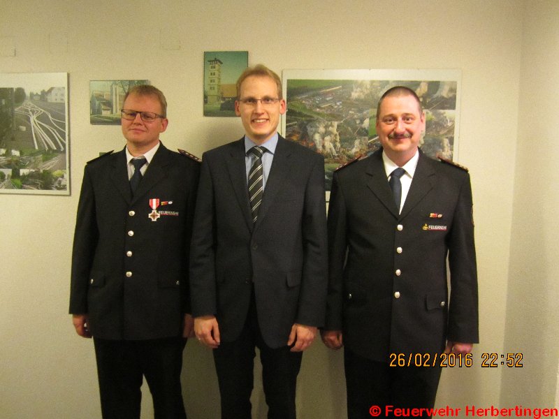 Die Jahreshauptversammlung der Gemeindefeuerwehr fand am Freitag 26.02.16 statt. Die Tagesordnung sah unter anderem die Wahl des Kommandanten und des Stellvertreters vor. Zur Versammlung waren neben den akiven Wehrleuten auch die Jugendfeuerwehr und die Alersabteilung eingeladen. Kommandant Martin Eisele konnte den Herbertinger Bürgermeister Magnus Hoppe, die Ortsvorsteher Reinhold Eisele (Hundersingen) und Dr. Bernhard Obert (Marbach), sowie den stellvertretenden Kreisbrandmeister und den stellvertretenden Vorsitzenden
