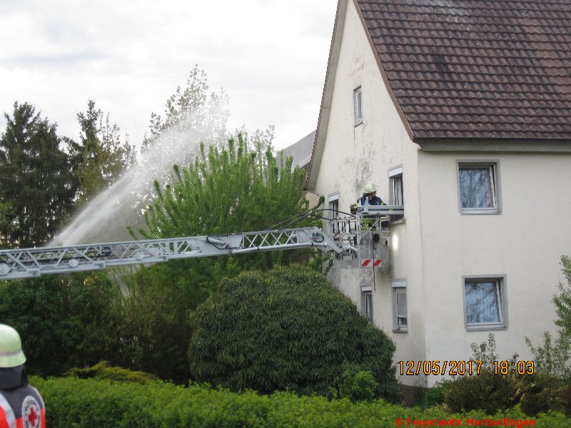 Eine bettlägerige Person musste aus dem Obergeschoss des Wohnhauses mittels Drehleiter gerettet werden. Die Wasserentnahme konnte mit dem SW2000 schon während der Erstphase vom nahegelegenen Krähenbach über eine Wiese aufgebaut werden. Insgesamt 54 Einsatzkräfte von Feuerwehr und DRK nahmen an der Übung in Mieterkingen teil.