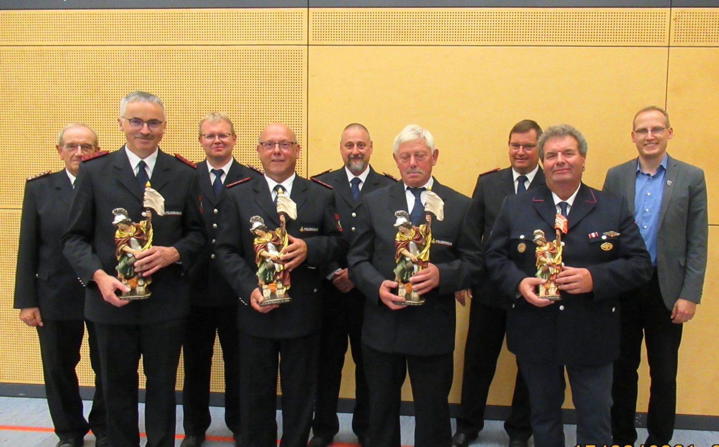Auf 40 Jahre aktiven Feuerwehrdienst konnten drei weitere Kameraden zurückblicken. Dietmar Bexten, Georg Scheb und Elmar Heinzelmann wurden mit dem Feuerwehr-Ehrenzeichen in Gold geehrt.