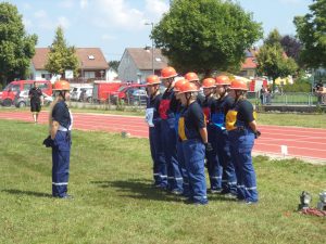 Neben den feuerwehrtechnischen Disziplinen Löschangriff und Schnelligkeitsübung, bei der es gilt, 8 Schläuche innerhalb einer bestimmten Zeit hintereinander ohne Verdrehungen zu verkuppeln, enthält die Leistungsspange auch einen theoretischen Teil und ein Sportteil. Die Sportdisziplinen bestehen aus Kugelstoßen und Staffellauf; im Theorieteil werden neben feuerwehrtechnischem Wissen auch aktuelle politische Themen abgefragt. Außerdem wird auch das Verhalten und Auftreten der Gruppe bewertet. Alle Disziplinen wurden von den Jugendlichen mit Bravour gemeistert.