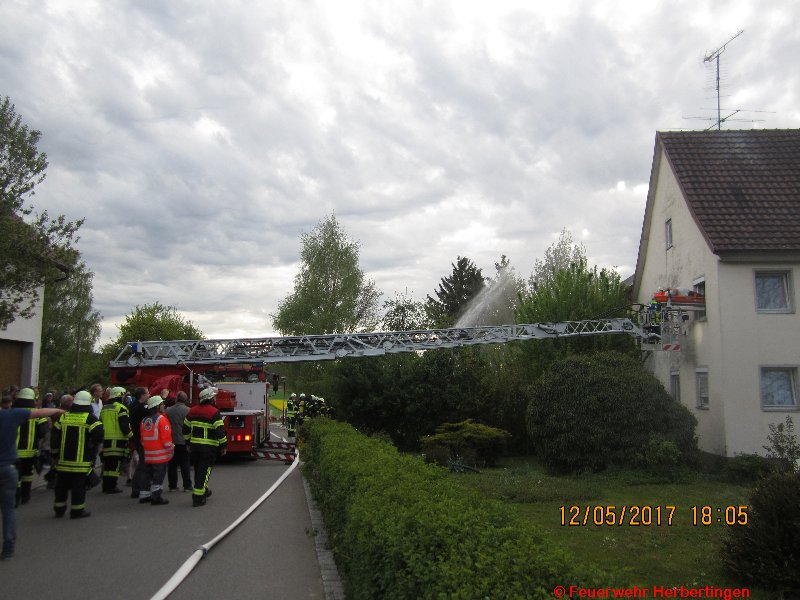 Eine bettlägerige Person musste aus dem Obergeschoss des Wohnhauses mittels Drehleiter gerettet werden. Die Wasserentnahme konnte mit dem SW2000 schon während der Erstphase vom nahegelegenen Krähenbach über eine Wiese aufgebaut werden. Insgesamt 54 Einsatzkräfte von Feuerwehr und DRK nahmen an der Übung in Mieterkingen teil.