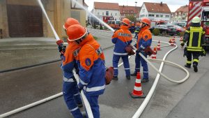 Die Jugendfeuerwehr Herbertingen hatte die Aufgabe, eine Wasserversorgung aus der Ostrach herzustellen sowie eine Riegelstellung zum benachbarten Pfarrhaus vorzunehmen.
